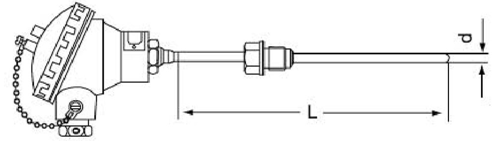 IE : Système à deux fils intégré gainé de platine résistance thermique, installation de boulon à virole mobile, boîtier de connexion étanche, diamètre extérieur, graduation Pt100, longueur totale 1000 mm.